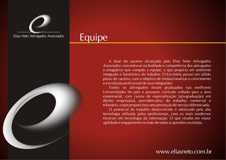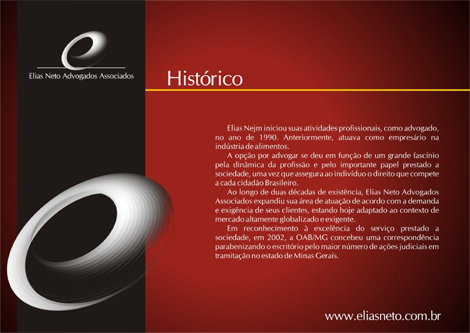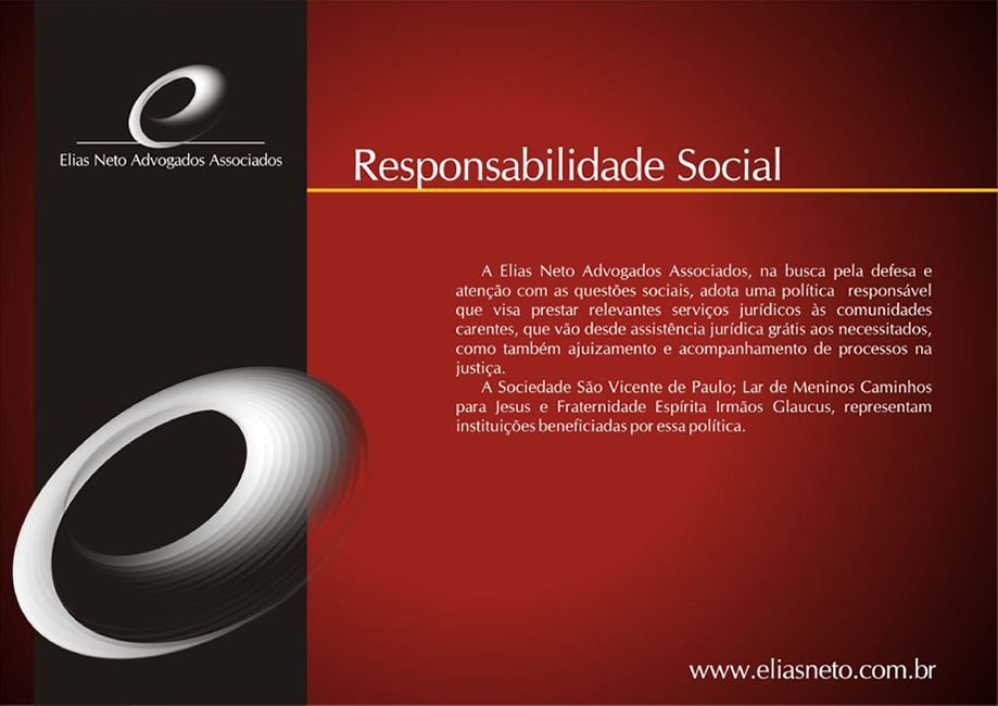 O escritório Elias Neto Advogados Associados possui correspondentes nas principais capitais do País, destacando-se São Paulo/SP, Rio de Janeiro/RJ, Vitória/ES, Salvador/BA e Porto Alegre/RS, desenvolvendo um sistema de parceria com escritórios de reconhecida idoneidade, sempre mediante orientação e acompanhamento diretos.